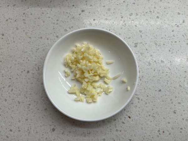 にんにくはみじん切りにします。えびを一口大に切ります。枝豆の粒の2~3倍くらいの大きさが目安です。【えびの下味】のしょうゆ小さじ1、片栗粉小さじ1をもみ込みます。※片栗粉をまぶすことで、えびが固くならずぷりっとした食感になります。