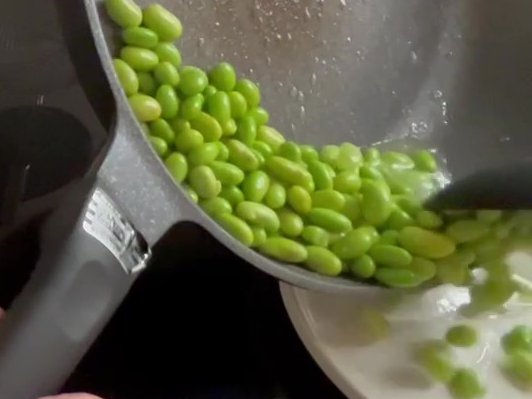 蒸しあがったら枝豆をいったんお皿などに取り出し、フライパンに水分が残っていればふき取ります。